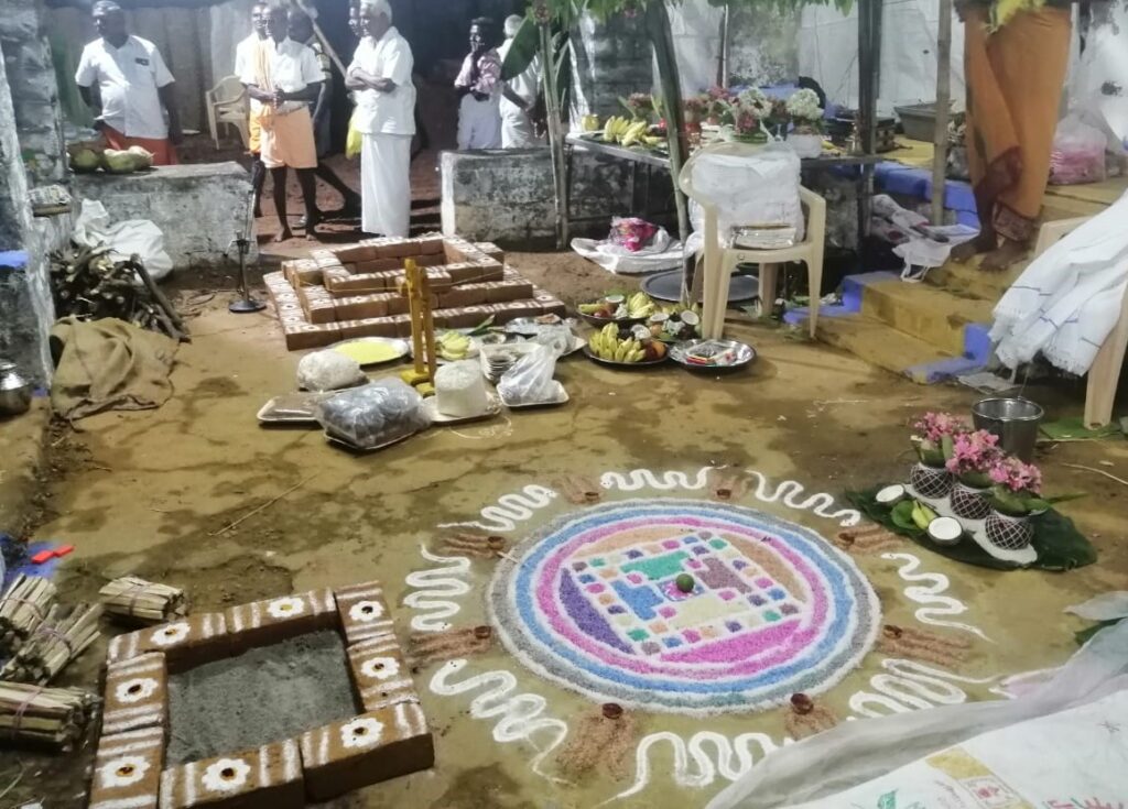 Balalayam is a significant ritual performed in Hindu temples, during the renovation and Kumbhabhishekam ceremony. The term “Balalaya” means a temporary abode. This pooja involves transferring the divine energy from the main deity to a temporary structure or idol, ensuring that the sanctity and spiritual essence of the temple are preserved during the renovation period. Balalaya Pooja took place at Venkatreiddyur Shri Mariamman Temple in 2022 on May 15th in the presence of Kumar Iyer, with many devotees participating.